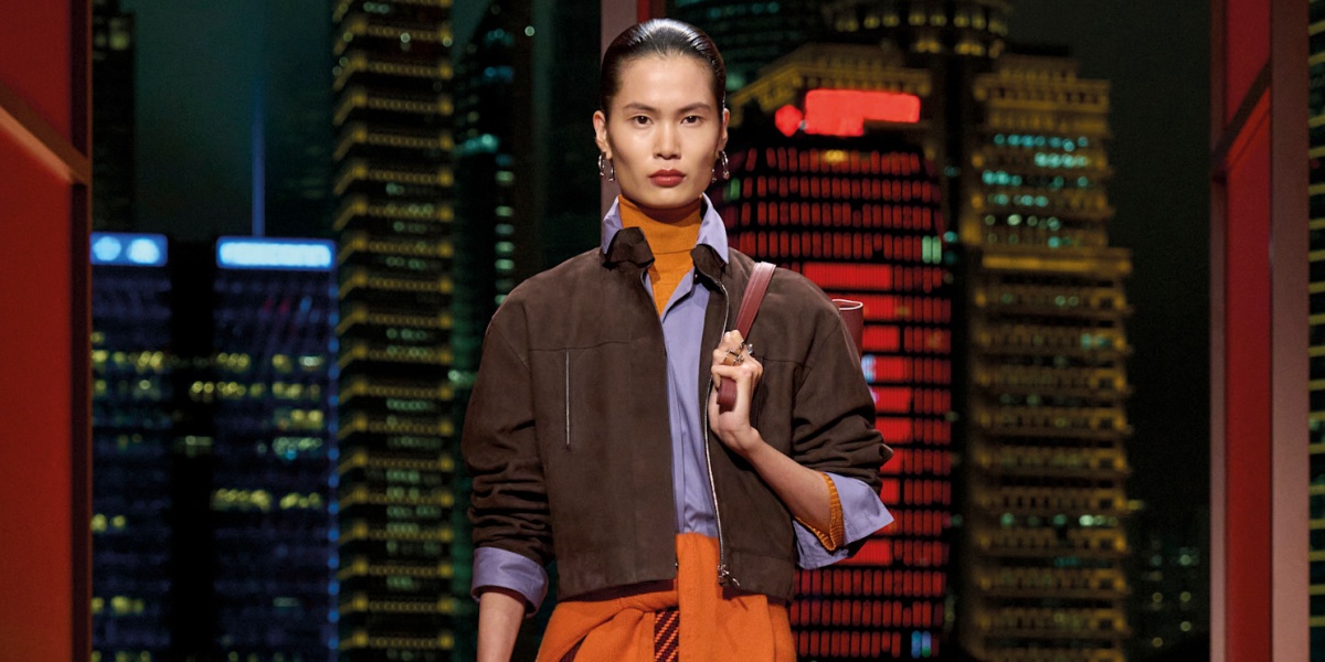 في عرض هيرمس، اجتمع البورغندي العميق مع البرتقالي المشرق في تنورة تجسّد روح الدار وحرفيّتها الأصيلة. لوحة بألوان نابضة بالحياة، تستحضر دفء الطبيعة وأناقة المرأة الواثقة بخطواتها.
