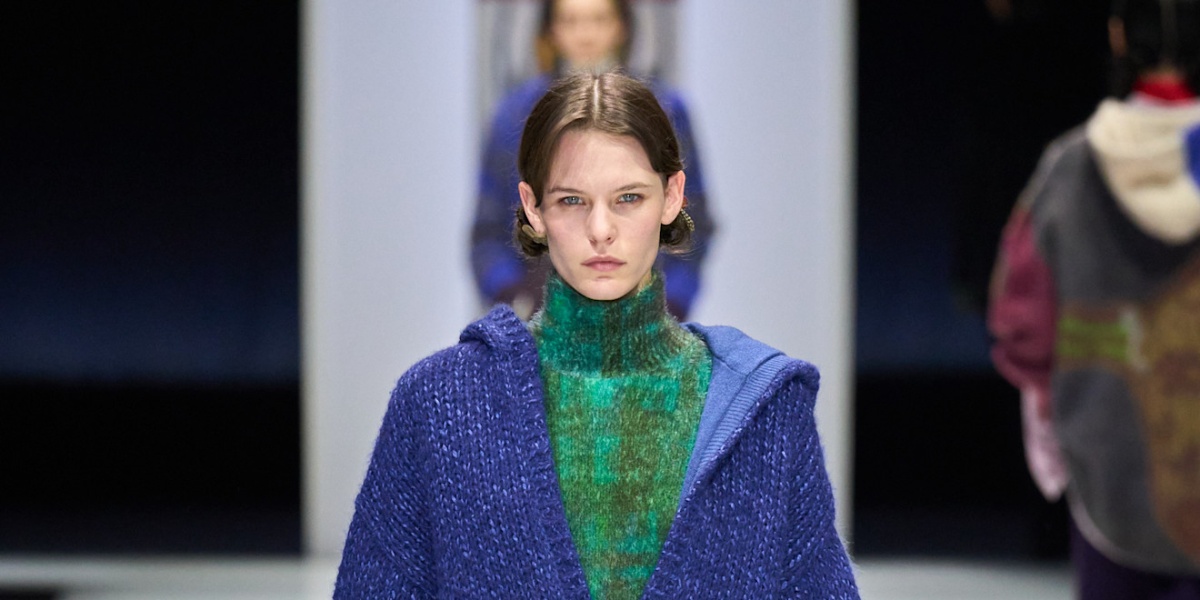 أيضاً من التنسيقات المميّزة، والجريئة لهذا الموسم من خريف وشتاء 2025-2026، البنفسجي مع الأصفر. يعتبر اللّون الأصفر من الألوان النارية البارزة لهذا الموسم، لذا إعتماده بأسلوب متضارب، مع البنفسجي، اللّون الراقي واذي يصنف في خانة الألوان الباردة، خيار جريء ولافت. هنا نستعرض إطلالة مميّزة من Miu Miu، نُسق فيها بلوزة باللّون البنفسجي مع تنورة باللّون الأصفر. إطلالة جريئة، وأنيقة في نفس الوقت، يمكنك إعمادها في إطلالات خريفية متنوعة، وتنسيقها بهذا الأسلوب المميّز، والجذاب.