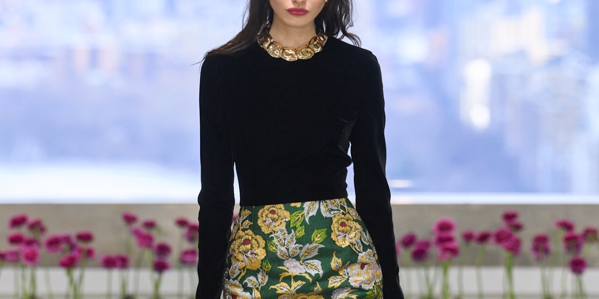 موضة تنانير الورود المستقيمة مع الاسود  من دار Carolina Herrera