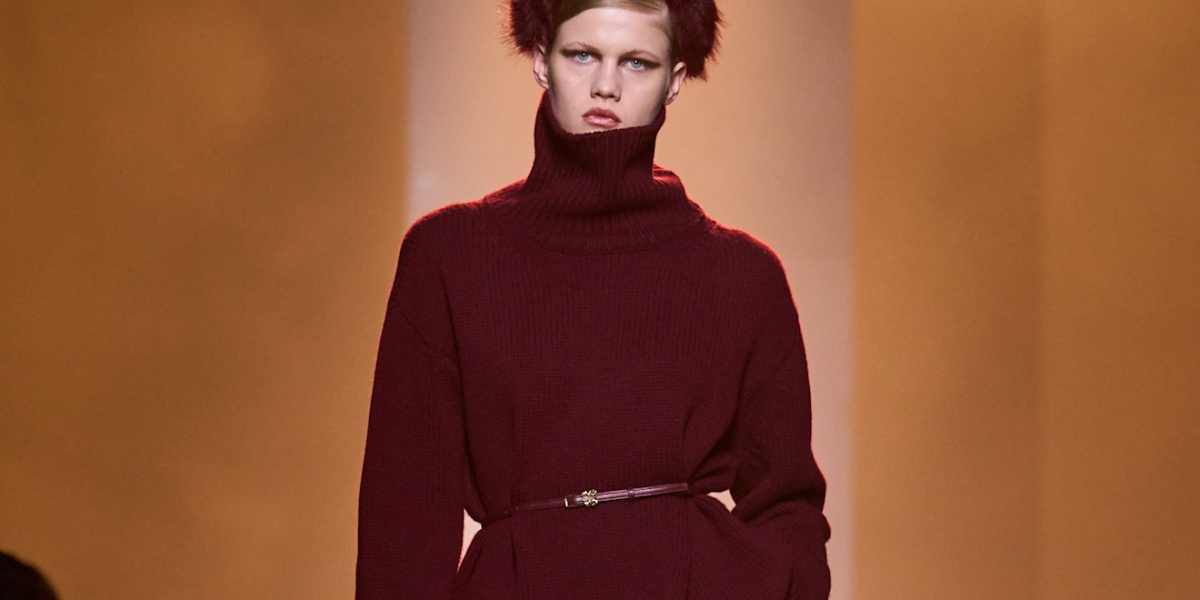 وفي "هيرمس" Hermès، برعت الدار في مزج البوردو مع البرتقالي في إطلالة دافئة وملهمة، تُذكّر بوهج النار في الليالي الباردة، وتُبرز قدرة اللون على التحوّل إلى عنصر بصري نابض بالشاعرية والدفء.