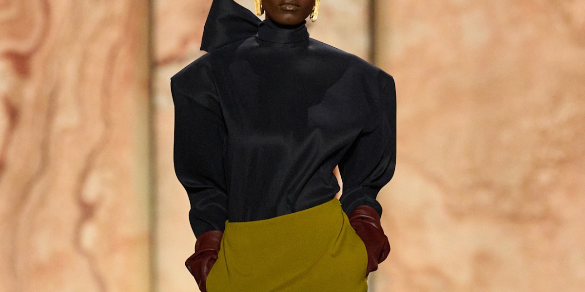 الإطلالات المونوكروم، تعتبر من أبرز الخيارات وأكثر أناقة. إختاري لون من ألوان العلم الإماراتي، ونسقي إطلالة مونوكروم، بأسلوب شيك وراقي. من الممكن إختيار اللّون الأخضر بتدرجاته المختلفة، الأحمر أيضاً، الأبيض أو الأسود. أيضاً من التنسيقات المميّزة، والتي تصنف مونوكروم، الأبيض مع الأسود. هنا نستعرض في الصورة الأولى، إطلالة باللّون الاخضر الزيتي، من Fendi. لوك أنيق وشيك، يمكنك الإستيحاء منه وتنسيق إطلالة وطنية مميّزة وجذابة.
