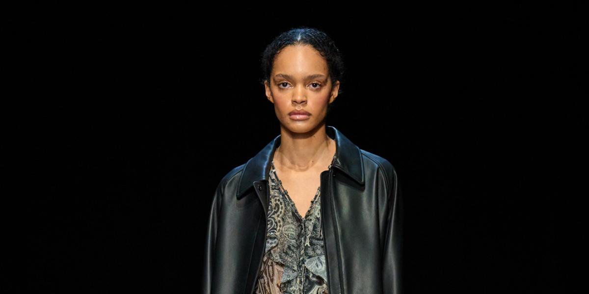 كما انتقي موضة التنورة الجلدية الطويلة بتدرجات اللون البني مع الأقمشة المتدرجة مع طبقات الشراريب القصيرة والبارزة على كامل التصميم بأسلوب لا يحدّد مفاتن الجسم من الاسفل. يمكنك تنسيقها بكثير من الانوثة، مع الخصر المنخفض والحزام الجلدي الرفيع.