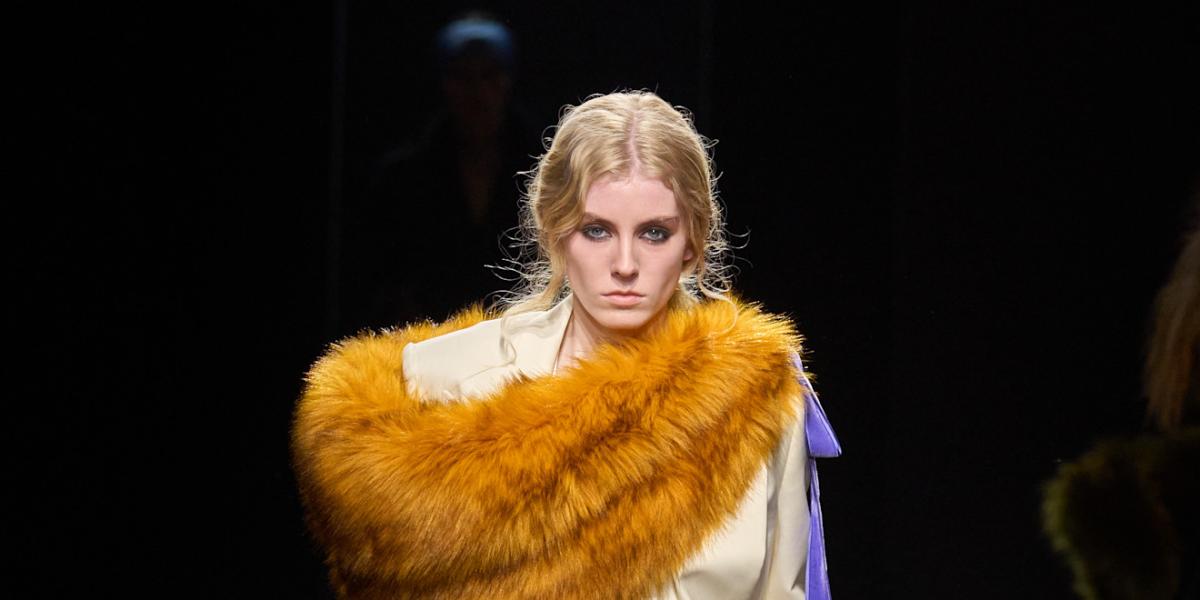 تبرز في اطلالة الشتاء موضة البنطلون البيج المتدرج بقصات هندسية وأقمشة الساتان الناعمة والمتدرجة بلون فاتح مع تحديد الخصر بالقماش المطاطي. فتعتبر من صيحات الموضة التي لا غنى عنها في اطلالاتك العملية، لذلك تألقي بالقصات الفضفاضة عالية الخصر، واحرصي بأسلوب دار Nina Ricci على انتقاء الجاكيت الطويلة المتداخلة مع الوشاح الفرو الهندسي بطريقة مميزة ومناسبة لاطلالات النهار.