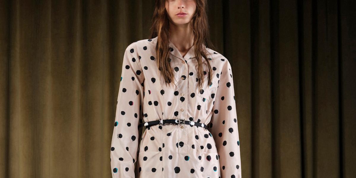 تعتبر نقشة البولكا دوت، من بين النقشات المميّزة، والرائجة في مجموعات Resort 2026. طبعاً هذه النقشة من الممكن أن تكون معتمدة بالأبيض والأسود، أو بألوان كثيرة أخرى. هنا نستعرض إطلالة بفستان قصير من Fendi، بنقشة البولكا بالأبيض والأبيض، نُسقت مع حذاء باللّون الأسود والأزرق. إطلالة مميّزة، عصرية، وكلاسيكية في نفس الوقت، يمكنك الإستيحاء منها وتنسيق لوك لافت في إطلالاتك المميّزة القادمة.