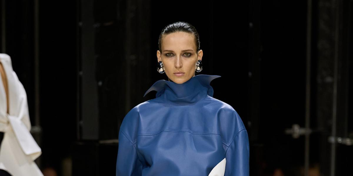 يتميز اللون الأزرق بخفته وانسيابيته، وقد أصبح اللون المفضل لدى الكثيرين في موسم خريف وشتاء 2026، حيث استخدمه العديد من المصممين. وقد ظهر هذا اللون في عروض Prada عدة مرات، ونسلط الضوء هنا على إطلالة رسمية بتدرجات اللون الأزرق الداكن والمتوسط تتناسب مع اللقاءات الرسمية ويوم العمل. كما عرضت Burberry اللون الأزرق الفاتح في تصميم أنثوي لمعطف كلاسيكي، والذي يتميز بكشكشة كثيفة عند الياقة. مستوحى من الطبيعة، هذا اللون الجليدي سيبقى رائجاً.