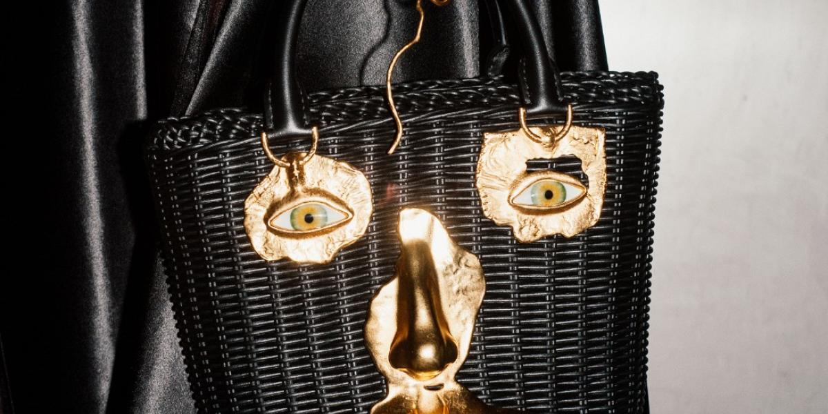 تستكشف حقائب "أناتومي باسكت" و"فيس" المصنوعة من جلد العجل البيج أو الأسود، الملمس والإدراك البصري. تُشكّل قطع مجوهرات تشريحية من النحاس المطلي بالذهب والمينا وجوهًا ذائبة، بينما تُضفي مقابض معدنية ذهبية صلبة لمسةً فنيةً دقيقةً على كل تصميم.