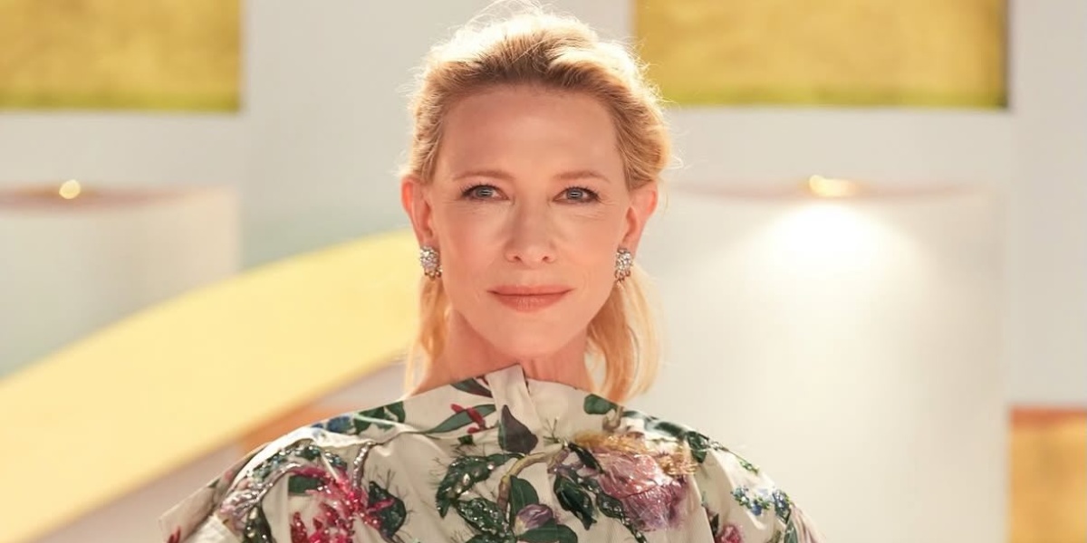 ارتدت كيت بلانشيت Cate Blanchett فستانًا مطرزًا يدويًا يتميز بخرزات ذهبية دقيقة، وتزيين من الصدر والكتفين بأحجار ذهبية، وهو الثوب نفسه، الذي ظهرت به في مهرجان كان السينمائي الدولي 2024.