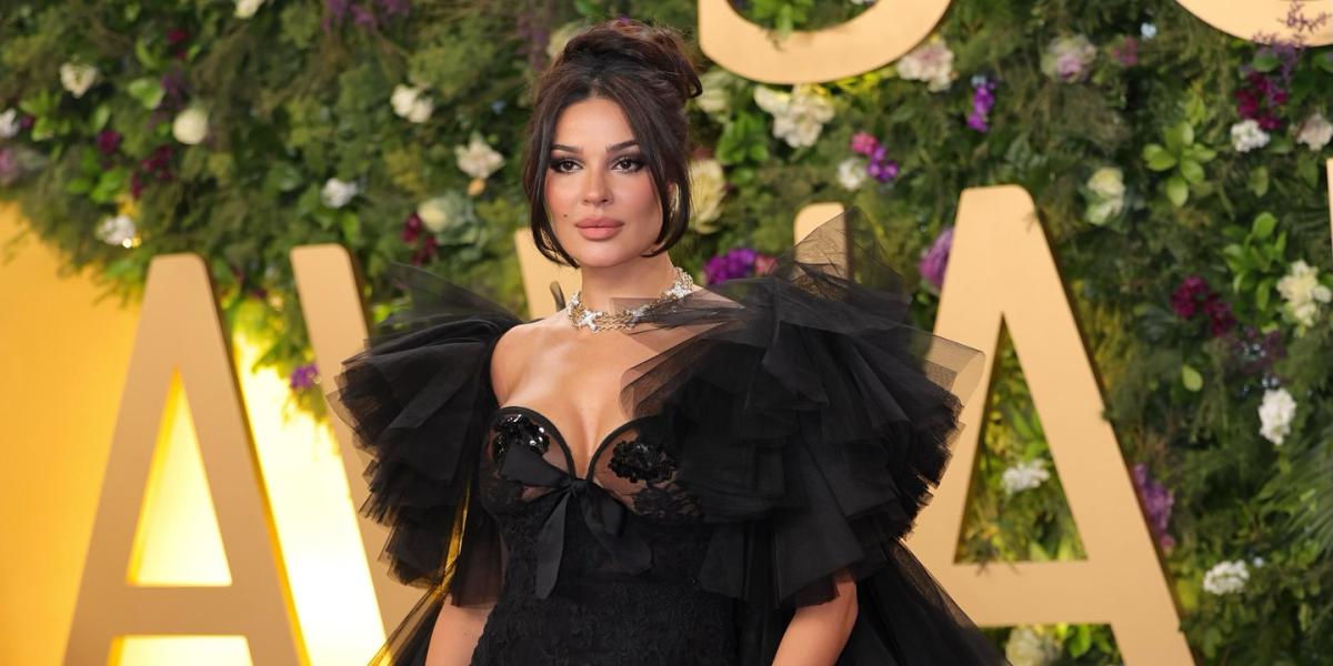 خلال حفل توزيع جوائز جوي اوورد Joy Awards 2025، تألقت النجمة اللبنانية نادين نجيم بفستان أسود مذهل من تصميم دار الأزياء الإيطالية الشهيرة Giambattista Valli، وزيّنت اللوك بقطع مجوهرات كبيرة الحجم وبارزة من الذهب الأصفر المرصّع بالألماس من دار تيفاني أند كو Tiffany & Co.