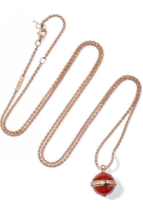 من علامة بياجيه نختار سلسلة راقية من مجموعة Possession الأنيقة بجمال عصري من الذهب الوردي والماس وحجر الكارنيليان بشكل كروي.