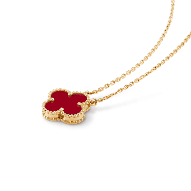 من علامة كارتييه نختار سلسلة من مجموعة Amulette de Cartier في نعومة أنثوية رقيقة من الذهب الوردي والماس وحجر الكارنيليان.