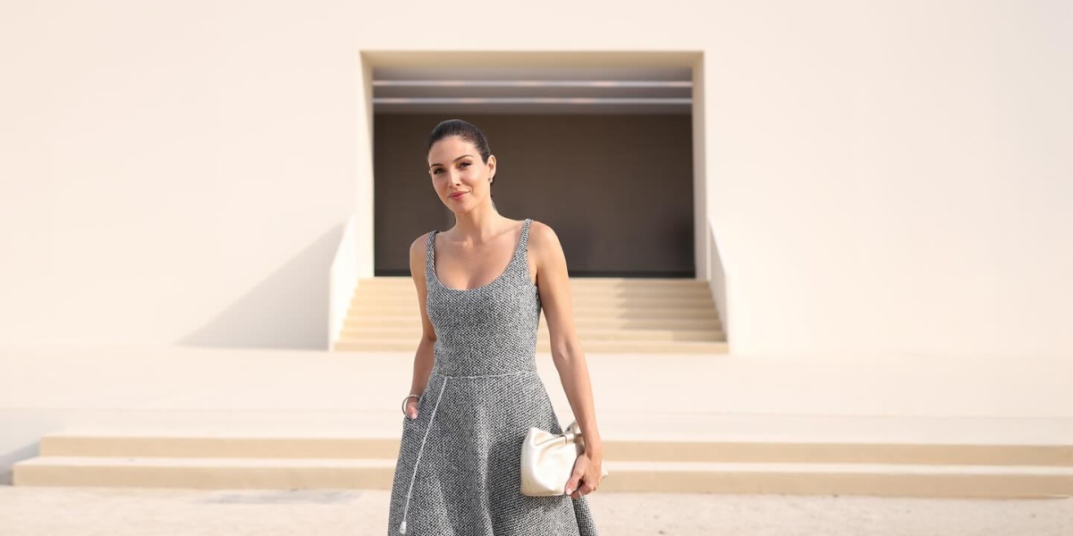 النجمة رزان جمال كانت من بين النجمات العرب اللواتي حرصن على حضور عرض ديور في أسبوع الموضة بباريس، وأطلت رزان بفستان رمادي أنيق بقصة متوسطة الطول وبأكتاف رفيعة ينساب بخفة ليمنحها إطلالة راقية وعصرية، ونسقته مع حقيبة صغيرة باللون الأبيض وحذاء أسود بكعب رفيع، فبدت بكامل البساطة والفخامة في آن واحد.