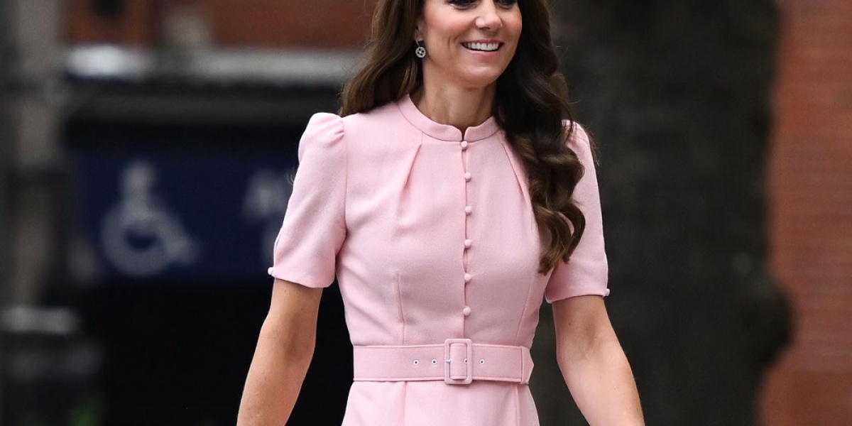 في ظهور آخر، اختارت كيت فستانًا ميدي باللون الوردي الباهت بقصة "A-Line" مريحة بدأت مجسّمة عند الجزء العلوي بأكمام متوسطة، ثم انسدلت باتساع من الخصر المزين بحزام عريض من نفس لون القماش. تفاصيل الأزرار الأمامية وفتحة الرقبة التي تحاكي الياقة الصغيرة أضفت لمسة من الحشمة والرقي. إلهام لكِ: هذا الفستان هو الخيار الأمثل للمناسبات النهارية أو لقاءات العمل، فهو يجمع بين الأنوثة والبساطة، ورسالته الوردية تصل بهدوء وأناقة.