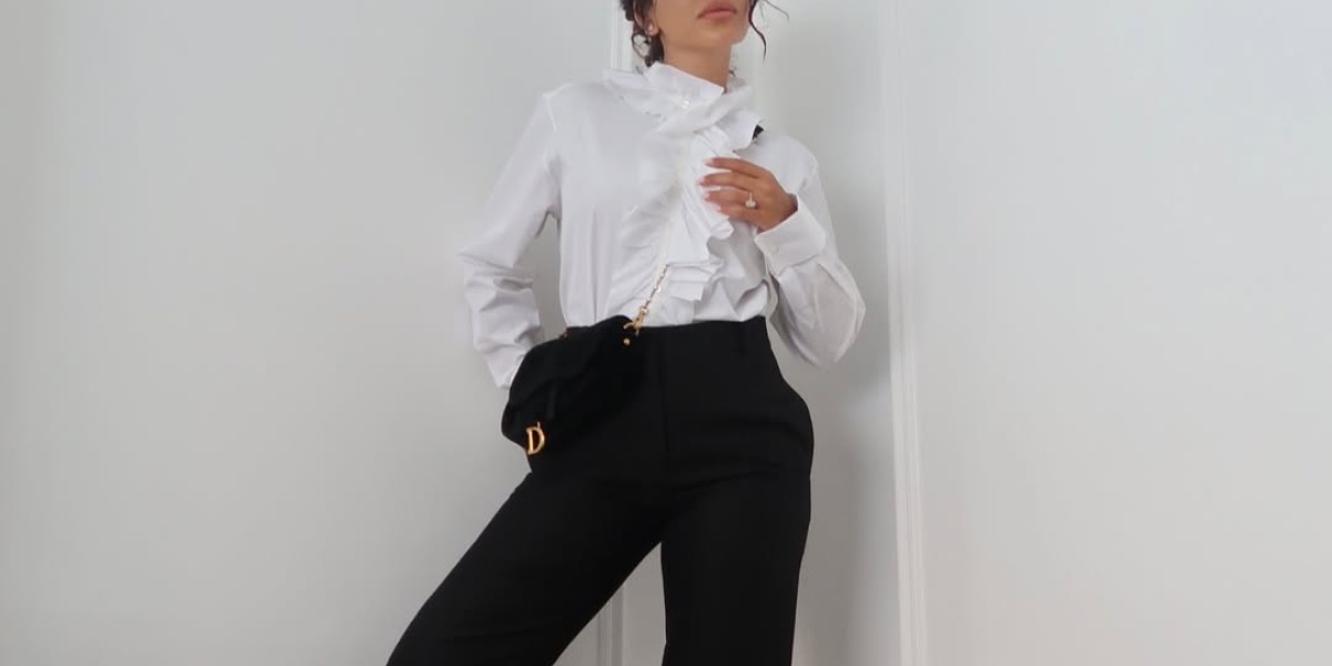 نجود الرميحي كذلك ارتدت البنطال القصير مع البالرينا، وهو ستايل كلاسيكي معاصر من Dior، حيث اختارت حذاء البالرينا من الجلد الأسود مع بنطال كلاسيكي قصير بخصر عالي، ارتدت معه القميص الأبيض المزين بياقة عالية من الكشكش الممتد على فتحة الأزرار، مع حقيبة الدار الشهيرة من المخمل المزين بلوجو الدار ولمسة الحامل المرصع باللؤلؤ، التي رسَّخت الطابع الكلاسيكي الذي تعشقه نجود على الإطلالة، كما سحبت شعرها المموج بهدوء للخلف.