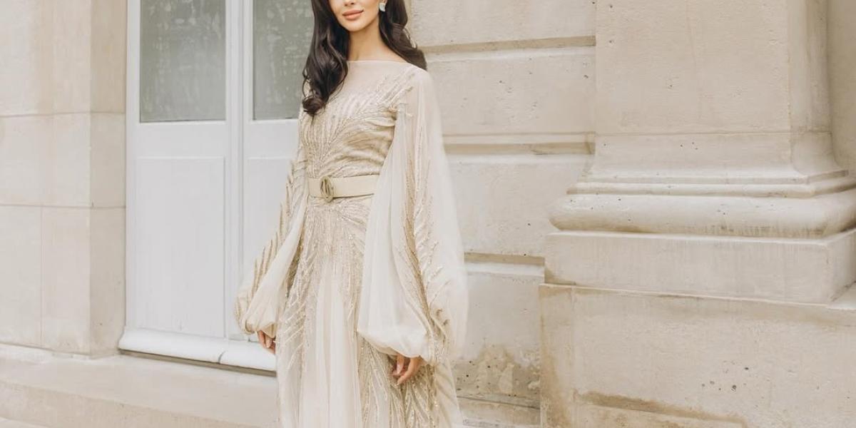 إطلالة راقية أخرى تناسب أمسيات السهر في الأجواء الرمضانية اعتمدتها رهف الحربي سابقا، حيث ارتدت فستانا محتشما بلون نيود فاتح، من تصميم طوني ورد، مصمم بأكمام طويلة منتفخة، مع الخصر المحدد للخصر بالأطراف الواسعة، بطبقة علوية من التل الشفاف، المطرز بخطوط ذهبية براقة تتفرع عند البطن امتدادا على الكتفين، مع نفس اللمسة عند الذراعين، وزين الفستان بحزام، ونسقت رهف الحذاء الأبيض مع طلتها، كما سرحت شعرها بخصلات مموجة بأسلوب كلاسيكي زاد من أناقتها.