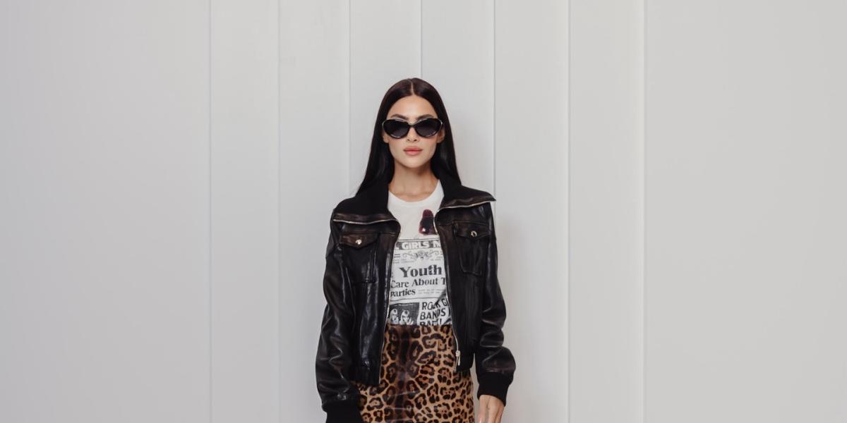 تألقت هدى المفتي كذلك من قبل بإطلالة جريئة من دولتشي آند غابانا تجمع بين الطابع العصري والأنوثة القوية، حيث ارتدت تنورة قصيرة بطبعة النمر الشهيرة للدار أضفت على الإطلالة لمسة من الحيوية والجرأة، ونسّقتها مع تيشيرت بيضاء مطبوعة وجاكيت جلد أسود بقصّة كلاسيكية تعكس روح التمرّد والأناقة الإيطالية في آن واحد، وأكملت اللوك بحقيبة صغيرة باللون البني الفاتح وحذاء عالٍ بتصميم شبكي يصل إلى الركبة، فيما أضافت النظارات الشمسية الكبيرة لمسة من الغموض والتميّز