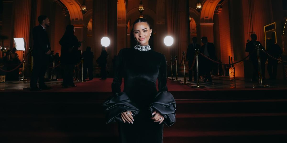 كما خطفت هنادي مهنا الأنظار بفستان أسود فاخر من توقيع "ياسمين حوا"، تميز بقماش براق بالكامل وتصميم عصري اعتمد على ياقة عالية "High Neck" مع فتحات "Cut-out" جريئة عند الأكتاف، وجاءت القصة محددة للجسم بأسلوب ملكي أبرز رشاقتها، وأكملت إطلالتها بأقراط ماسية عريضة لافتة وسوار رقيق زادا من فخامة حضورها على السجادة الحمراء.