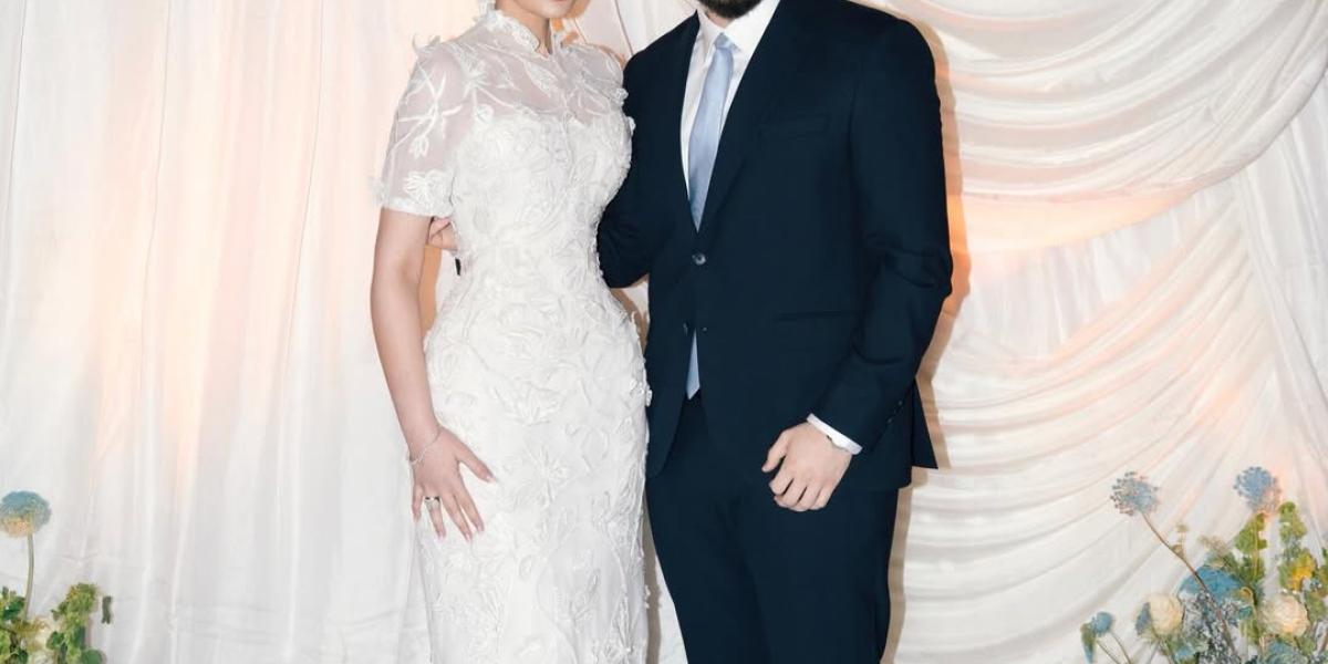 وبدت ملك أحمد زاهر أنيقة بفستان ناعم باللون الأزرق الباستيل، عانق قوامها بقصة مجسمة، بصيحة الأوف شولدر، مع أكمام طويلة مزينة بكشكش منتفخ من الحرير حول المعصمين، كلمسة جمالية مفعمة بالأنوثة، وقد نسقت معه صندلا ميتاليك باللون الفضي، وتزينت بمجوهرات مرصعة مع تسريحة الكعكة العالية.