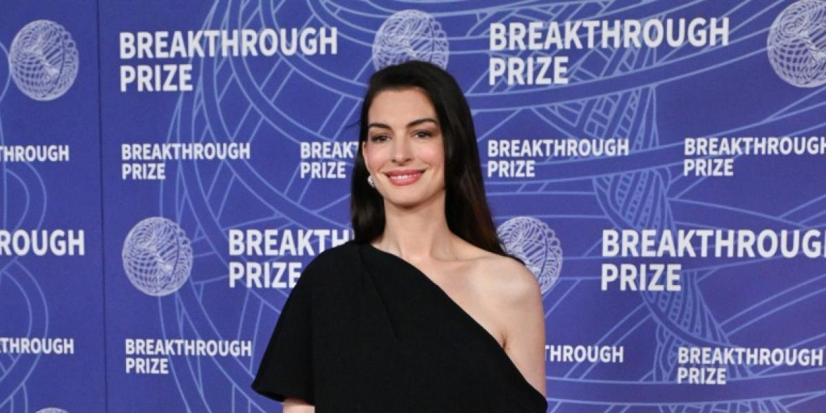 النجمة آن هاثاواي بدت فاتنة كعادتها في الحفل، بإطلالة عصرية رقيقة، عبارة عن فستان طويل باللون الأسود، مصمم بقصة الكتف المائل، محدد بشريط منسدل من الكشكش، الممتد على جانب التصميم، وانسدل الكتف على ذراعها، كما عانق الفستان قوامها بقصة مجسمة وزين بفتحة الساق الجانبية، وانتعلت آن هاثاواي صندلا عاليا باللون الأسود، كما تزينت سوار ثعباني من الذهب، مع أقراط براقة، وحملت كلاتش بقابض معدني، كما تركت نجمة فيلم the devil wears Prada شعرها الطويل منسدلا بخصلات ويفي.