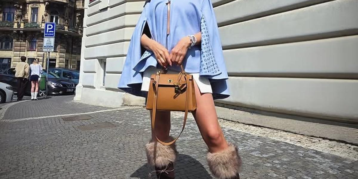 اعتمدت مي عمر صيحة "الكاب" بأسلوب عصري لافت، حيث اختارت كاباً قصيراً باللون الأزرق السماوي الهادئ، تميز ببطانة تحمل شعار "مونوغرام" الدار العريقة، مما أضفى فخامة هادئة على اللوك. وكسرت رتابة الألوان الشتوية بتنسيقه مع تنورة قصيرة باللون الأبيض بفتحة جانبية بسيطة، لتبرز قوامها بأسلوب أنثوي وعملي يناسب التنزه في شوارع براغ المرصوفة بالحصى.