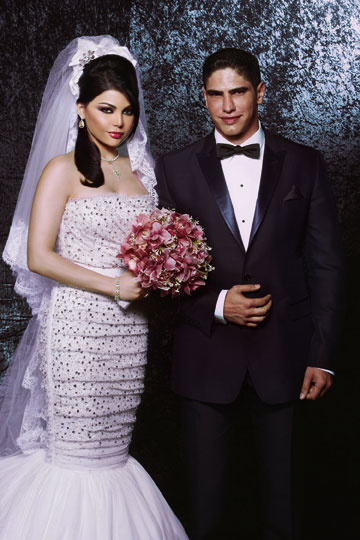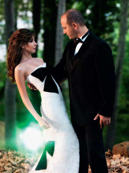 اما صاحبة أغنية "الواوا" الفنانة هيفا وهبي التي تزوجت رجل الأعمال المصري أحمد أبو هشيمة فتألقت في زفافها بفستان من تصميم دولتشي آند غابانا. وجاء تصميم الفستان على شكل حورية مع الكثير من الشك.