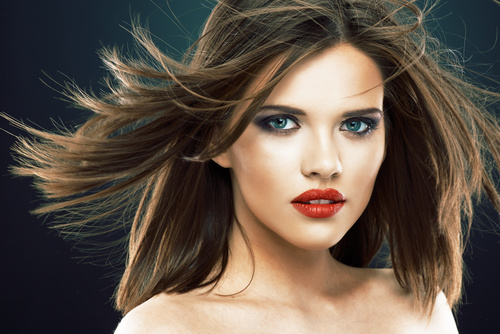 الشعر البني الداكن: يليق به ألوان أحمر الشفاه الداكنة كالبني والتوتي والأرجواني الداكن والأحمر الخمري والأحمر. كذلك يليق به الظلال الجريئة الفاتح منها والداكن، فيمكن تطبيق تدريجات البني الداكن والفاتح أو اعتماد ظلال جفون ميتاليك مثل البرونزي والنحاسي والذهبي.