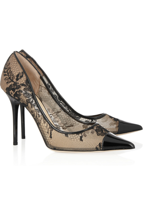 -من Jimmy Choo إخترنا حذاءً ملائماً بتصميمه مع الفستان، مصنوعاً من الدانتيل الاسود المطعم بنقشات الورود والجلد اللماع.
