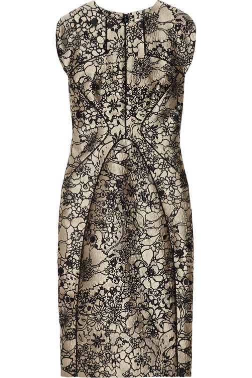 -فستان مميز باللونين الأسود والبرونزي للمصممة الأميركية Lela Rose يتميز بطبعات الورود المميزة وبقماش الجاكار المطعم بخيطان الحرير لتضفي اليه لمسات لماعة ناعمة، يعكس على اطلالة الوالدة اناقة راقية ومحتشمة وانثوية في نفس الوقت.