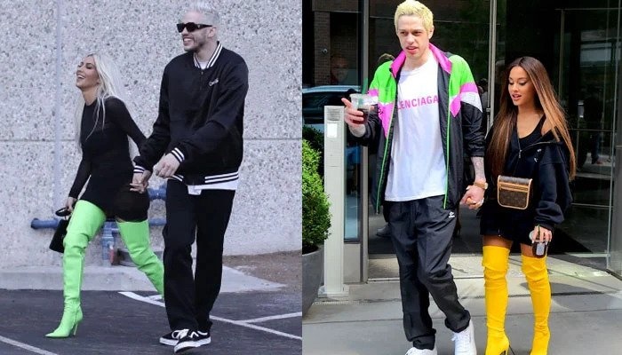 أثارت صور كيم كارداشيان الأخيرة إلى جانب بيت ديفيدسون تساؤلات، عما إذا كانت الأخيرة تحاول تقليد أريانا غراندي، خصوصاً بعدما أطلت بفستان أسود قصير نسّقت معه الجزمة ذات الساق العالية باللون الأخضر.