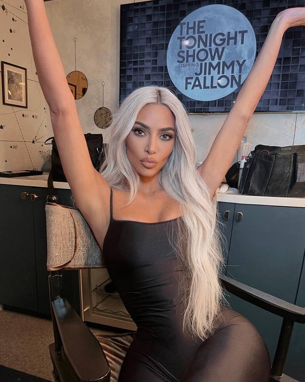 شاركت كيم كارداشيان معجبيها بمجموعة من الصور عبر إنستقرام، حيث أطلت بفستان أسود، ولكن ليس أي فستان أسود عاديّ. فقد عانق الثوب قوامها، وتميّز بطوله الذي لامس الأرض والياقة العالية والأكمام الطويلة، مع الفتحة الجريئة جداً حول الأرداف. واعتمدت كيم مع هذه الإطلالة تسريحة شعر مرفوع بشكل مبعثر، ومكياج دراماتيكي، فيما غابت الإكسسوارات وحتى الحذاء عن اللوك.