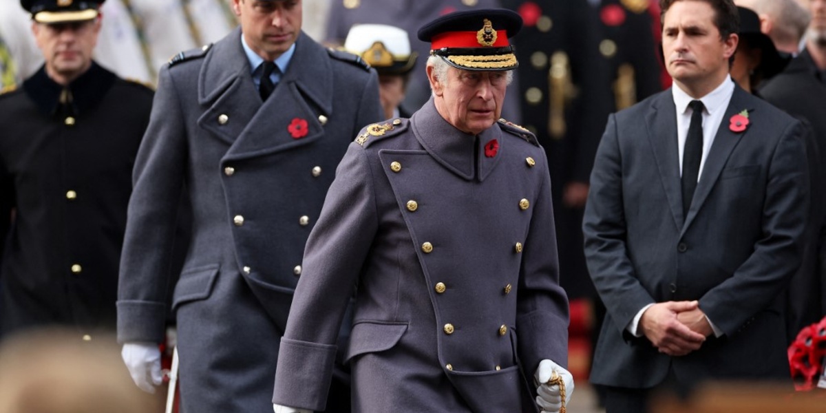 ارتدى الملك تشارلز الثالث ملك بريطانيا وولي عهده الأمير ويليام، وشقيقة الأمير إدوارد شارة ERII الخاصة بالملكة إليزابيث الراحلة على أكتافهم اليسرى لإحياء أحد الذكرى.
